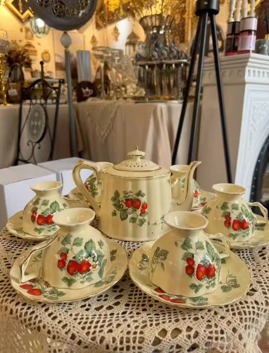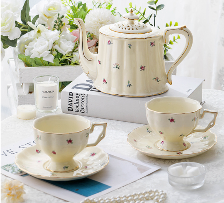 Elegant Style Afternoon Tea Set - Rose And Strawberry Print - Fresh French Noble Design - Tea Pot And Tea Cup Set