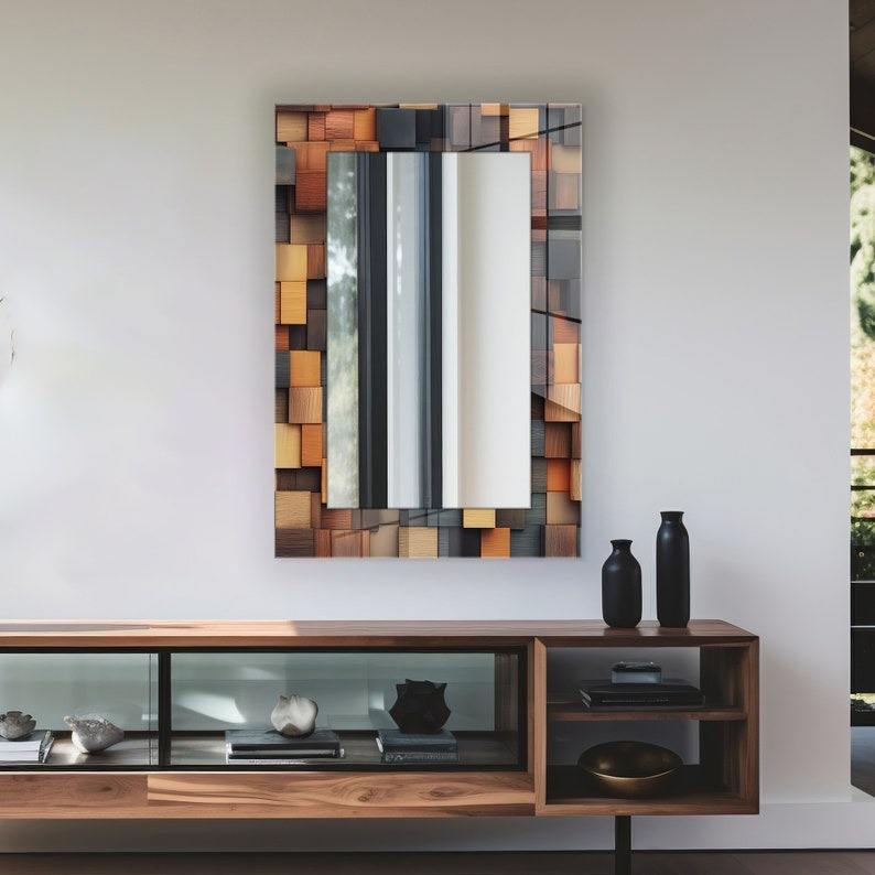 Elegant Style Black & White Bone Mosaic Mirror Luxury Mother of Pearl Inlay Wall Mirror Wall Mirror Wall Decor