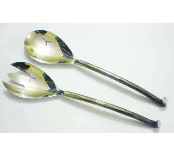 Elegant Style Custom Stainless Steel Salad Server Set Hammered Handle Salad Tool Salad Mixer Spinner SS Cutlery Spoon Fork Set
