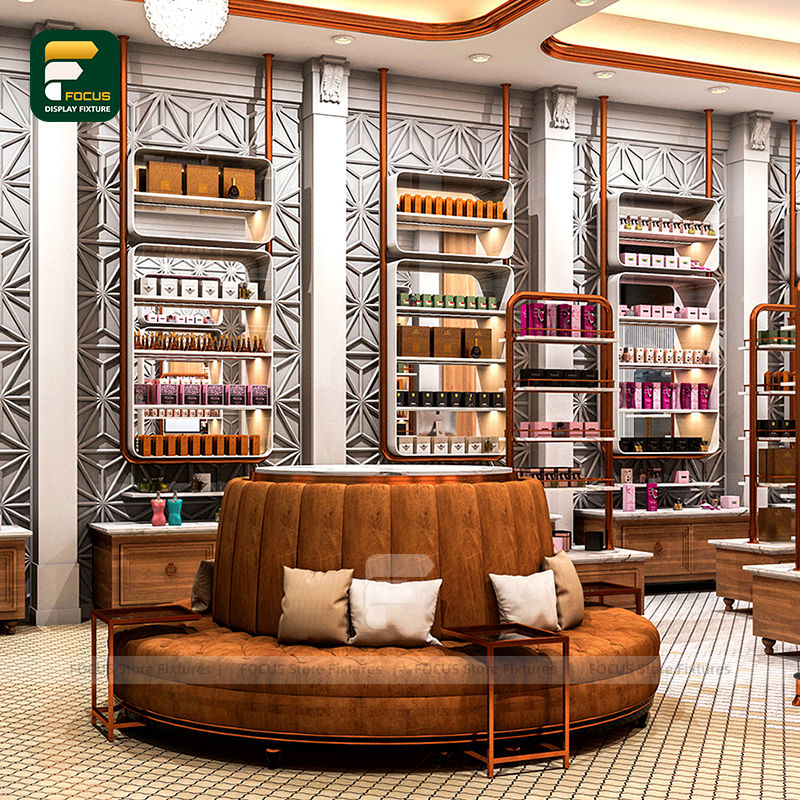 Elegant Style Luxury Perfume Store Interior Design Modern Retail Display Cabinet Counter Showcase Custom Wooden Shelving Fixture