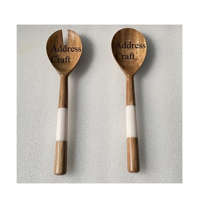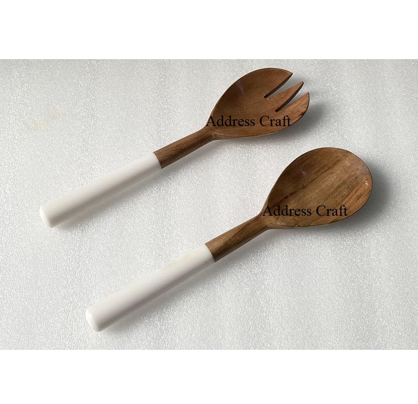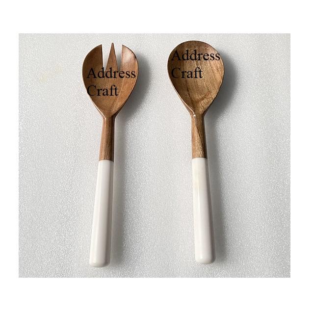Elegant Style Salad Server Resin Handle Acacia Wood Food Safe Cutlery Salad Serving Spoon Fork Set Tableware Kitchen Accessories