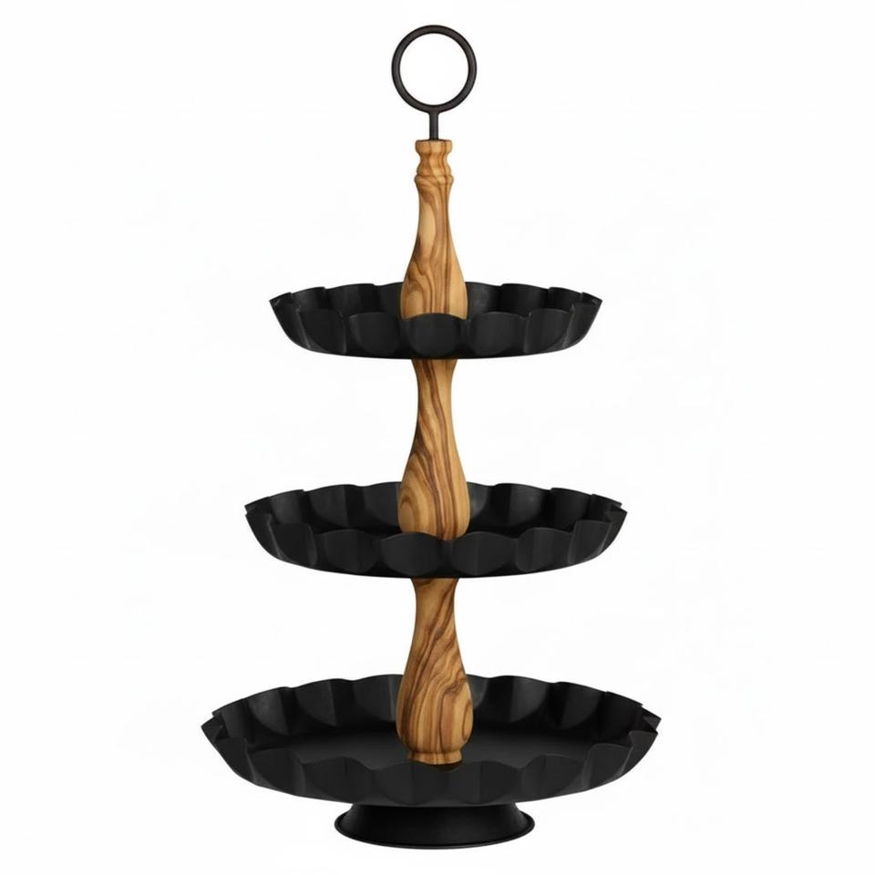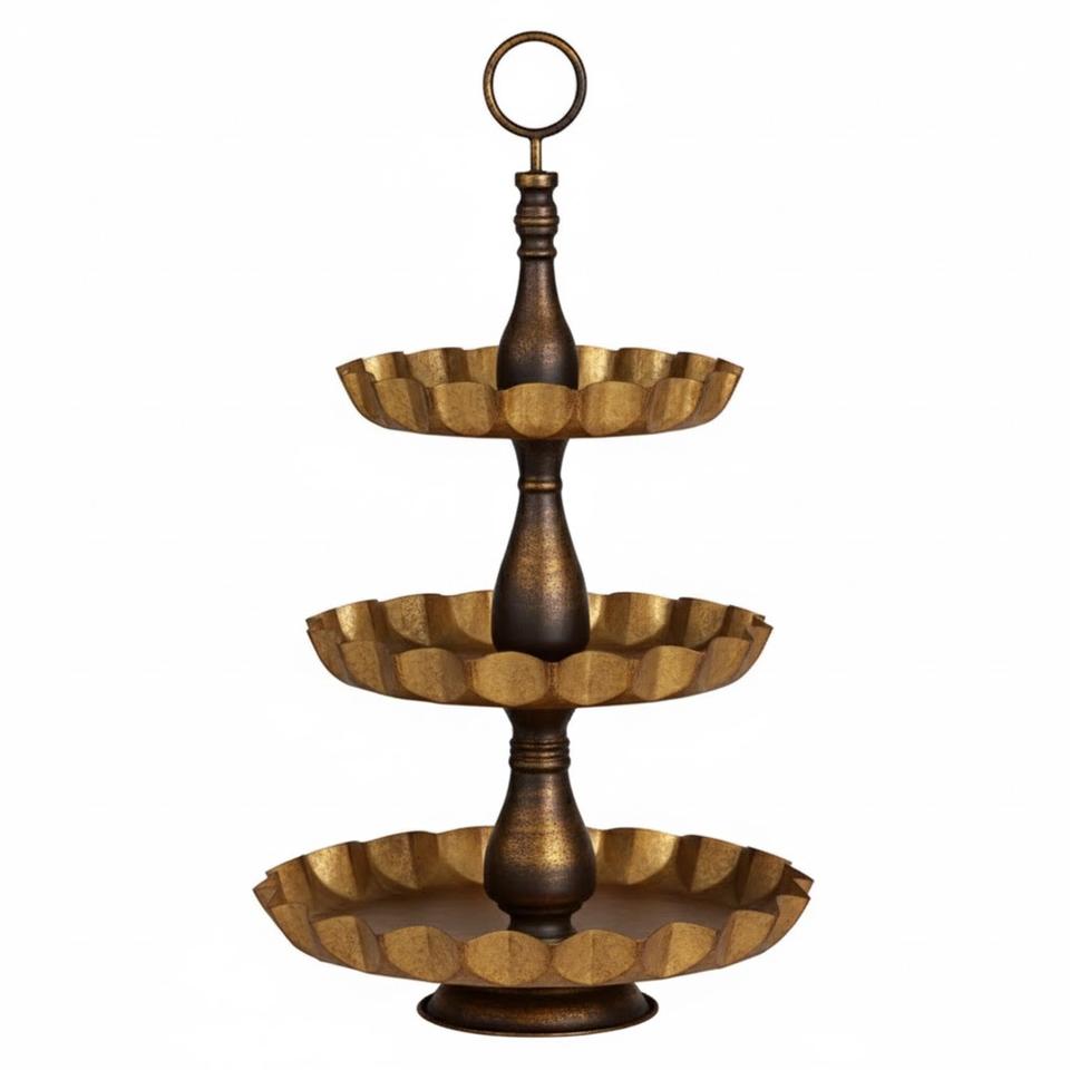 Elegant Style Three-Tiered Serving Stand Antique Gold Metal And Solid Wood Display Tray Cake Dessert Fruit Display For Home Use