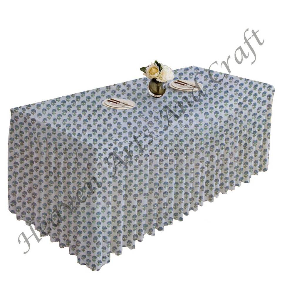 Elegant & Stylish 100% Cotton Printed Rectangle Pleated Table Cloth Floral Home Decor For Living Room Wedding Woven Center Table