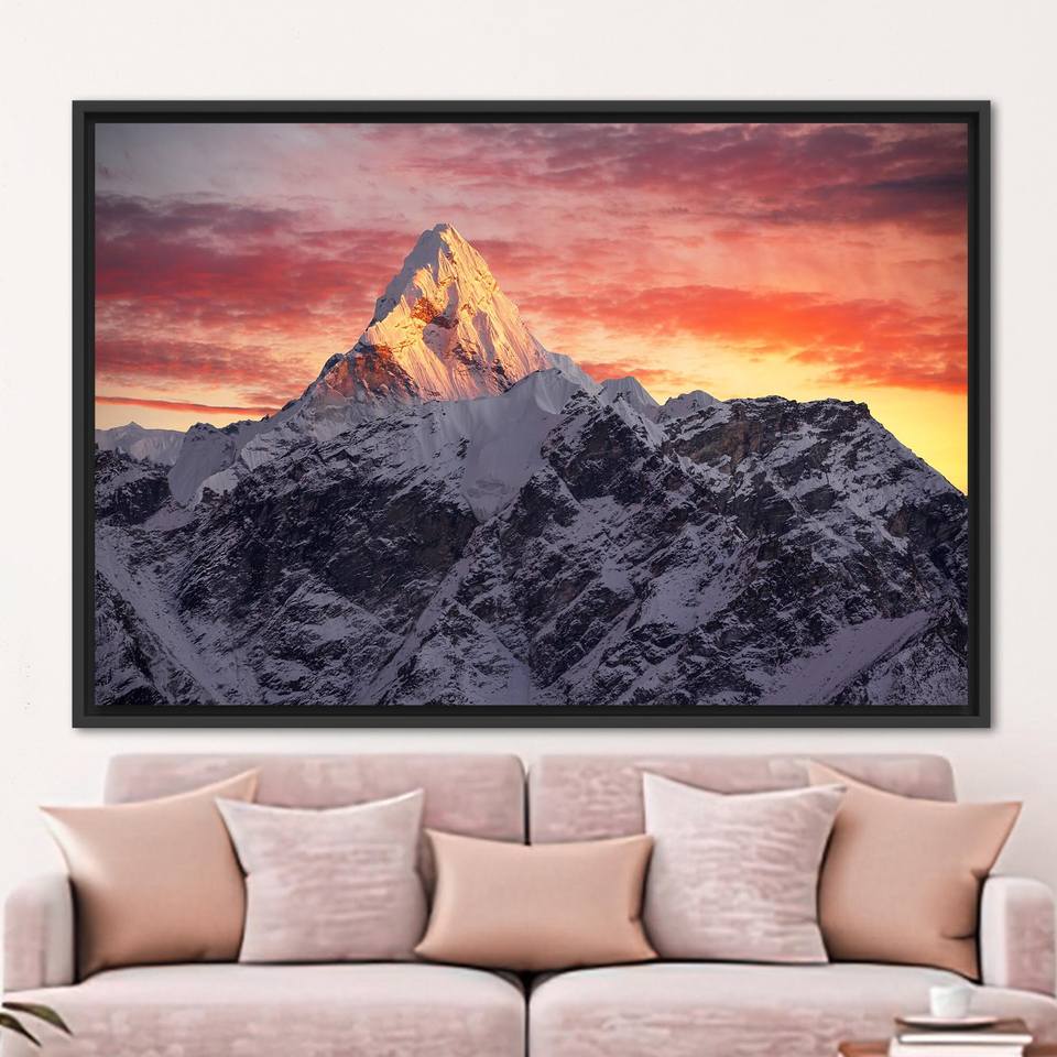 Elegant Sunrise Canvas Art: Ama Dablam Peak Print for Home Decor,1P:Black Framed