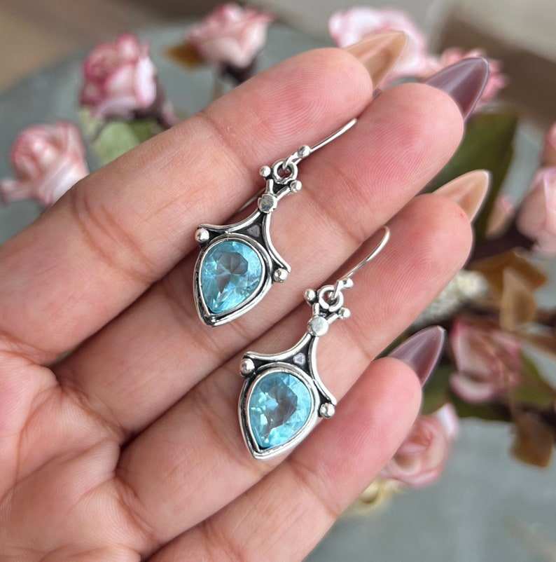 Elegant Swiss Blue Topaz Earrings in 925 Sterling Silver Handmade Drop Gemstone Jewelry for Women and Girls