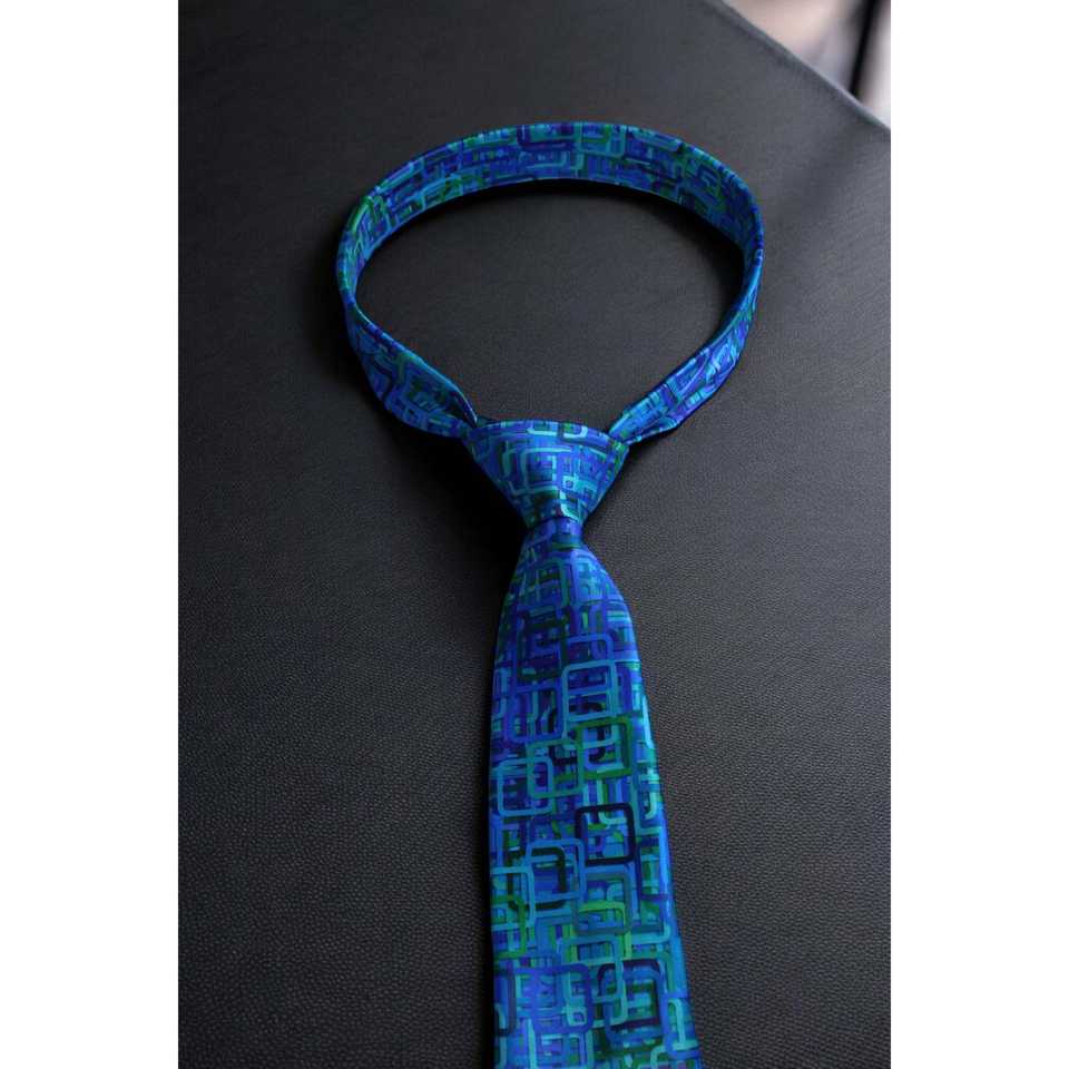 Elegant Teal and Navy Geometric Silk Tie with Pocket Square Fashion Accessory