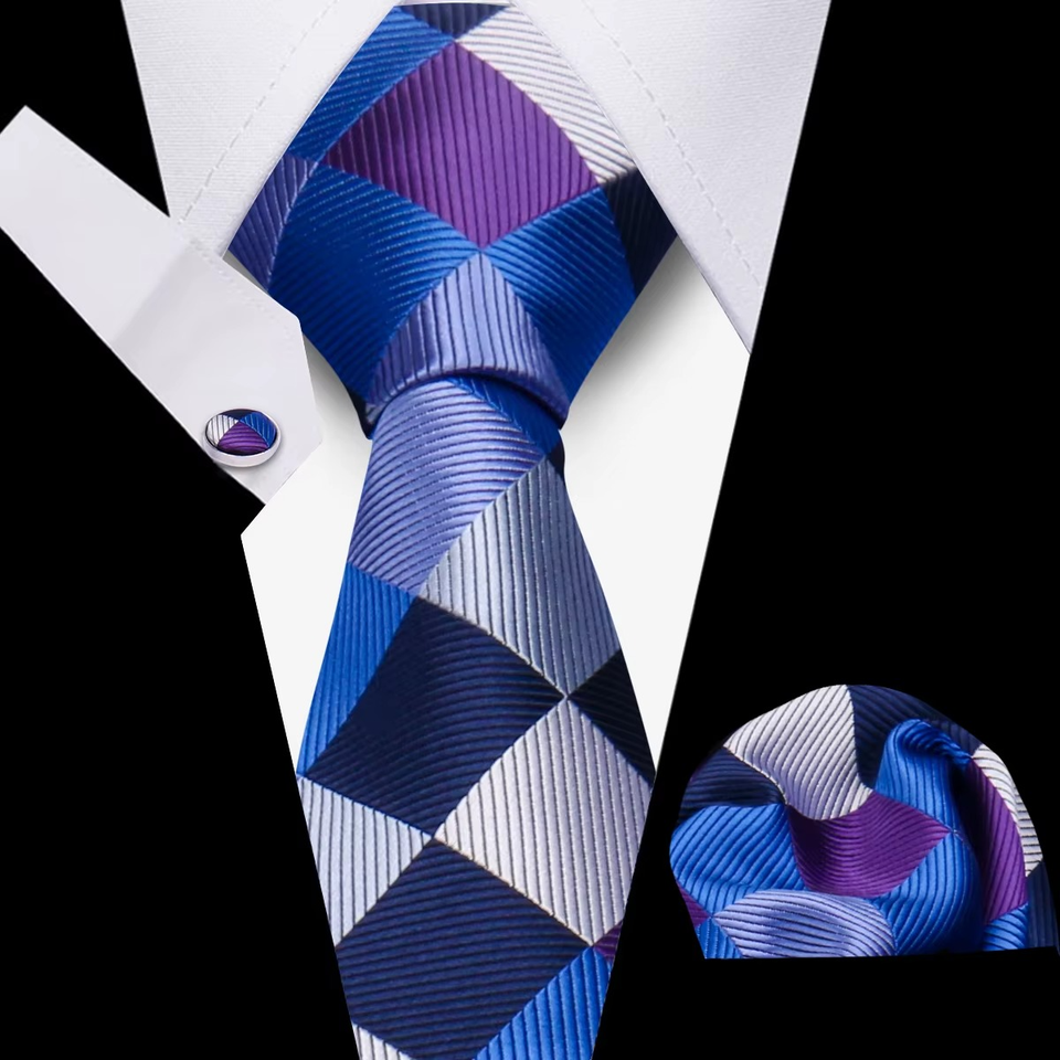 Elegant Ties For Men Gift Fashion Men Tie Set Striped Luxury Necktie Handchief Cufflinks 3 Pcs Business Wedding Suit Accessories