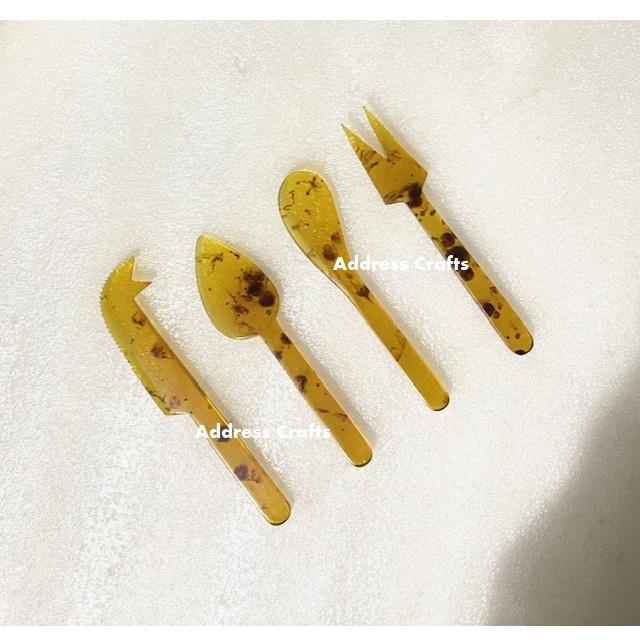 Elegant Tortoise Color 4-Pcs Swirl Resin Cheese Tools Premium Quality Resin Cutlery Set Dinnerware Tableware Decor Cheese Tools