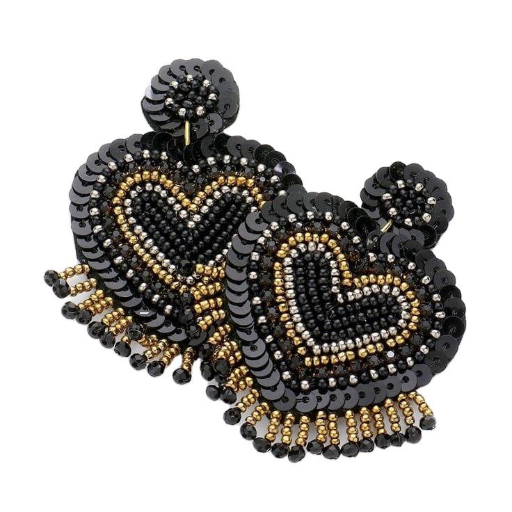 Elegant Trendy Handmade Luxury Black & Gold Earrings With Fancy Multicolor Beaded Embroidery For Stylish Girls & Beautiful Women