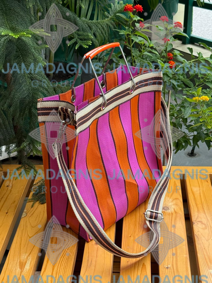 Elegant Turquoise Pink Recycled Nylon Shopping Bag With Webbing Strap