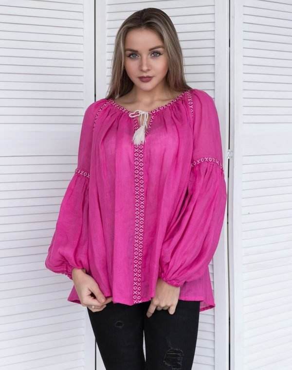 Elegant Ukrainian Cotton Blouse Boho Top Tassel Tie Neck Embroidery Simple Relax Fit for Hot Summer Parties Hot Summer Casual