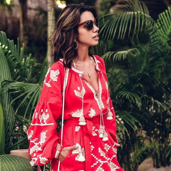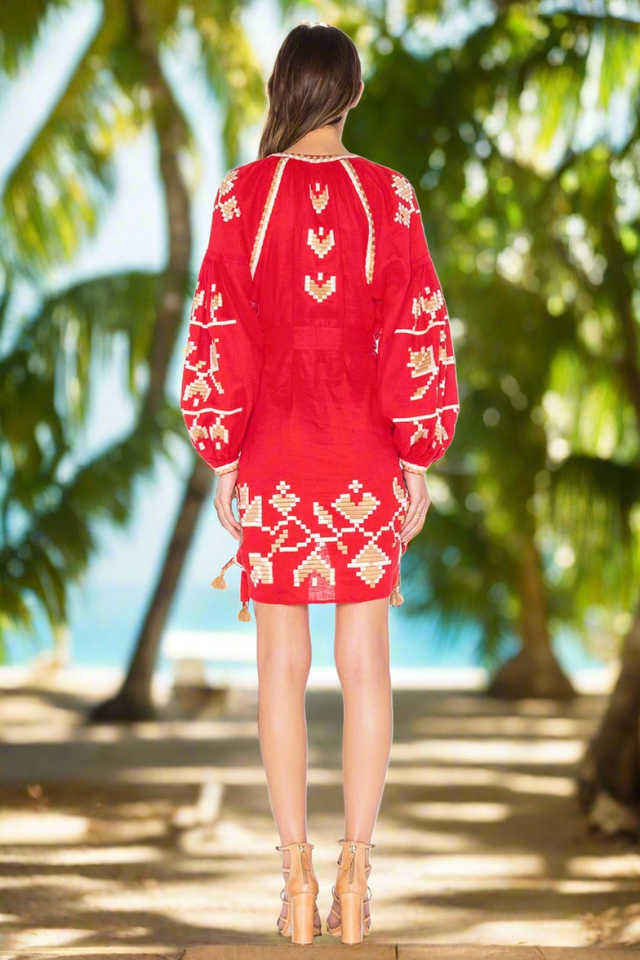 Elegant Ukrainian Women's Mini-Length Linen Cotton Dress Floral Embroidered V-Neck Sexy Summer Eco-Friendly for Sustainable