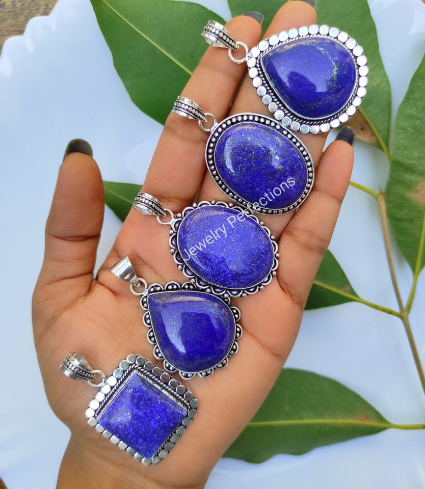 Elegant Unique 925 Silver Fine Natural Lapis Lazuli Pendant Charm Necklace Wholesale Women's Bulk Jewelry Parties Moissanite