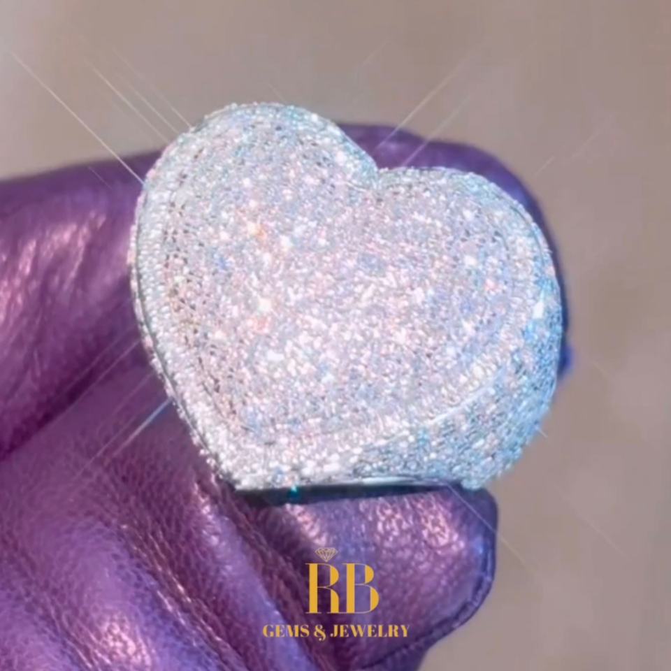 Elegant Unisex Brass Heart-Shaped Engagement Ring with Unique Inlay IGI Certified Lab Grown Zircon Romantic Wedding