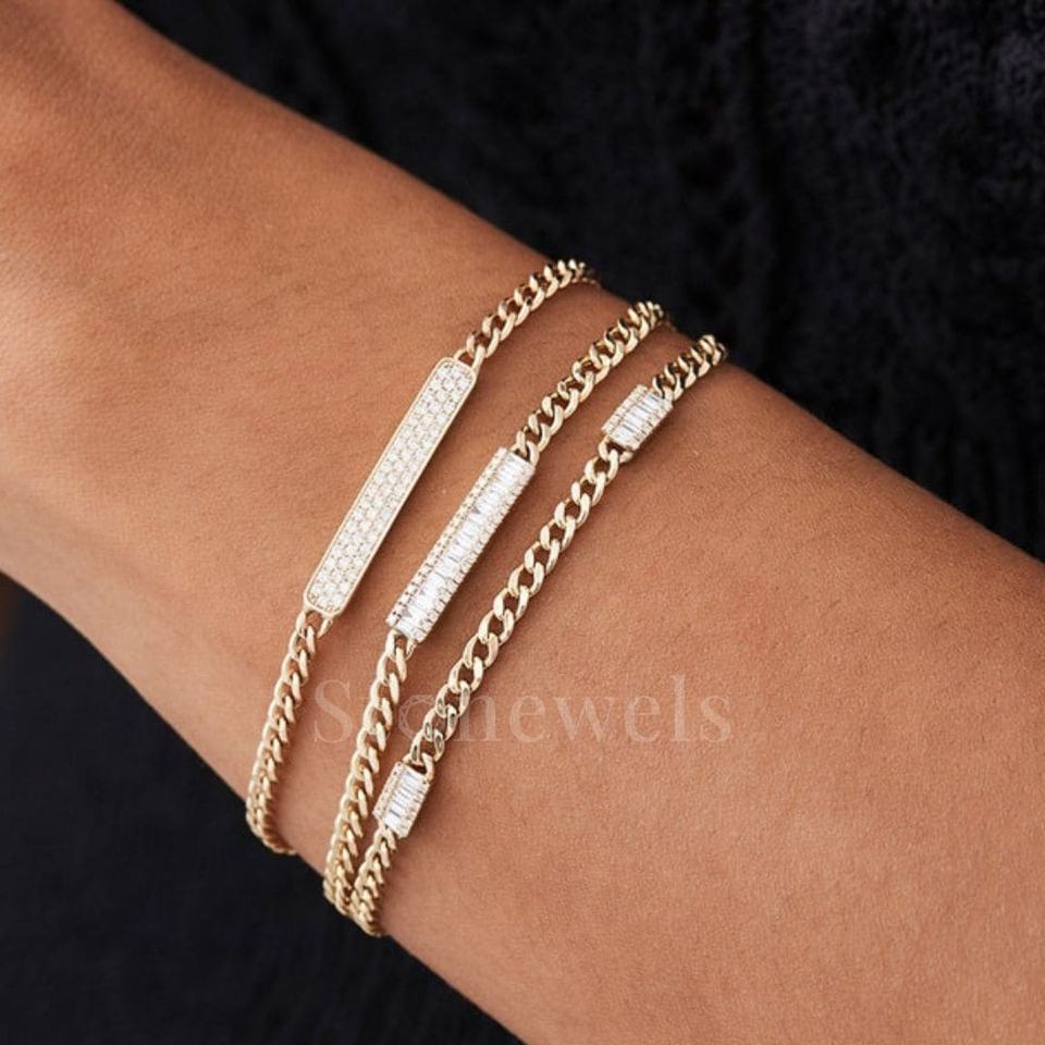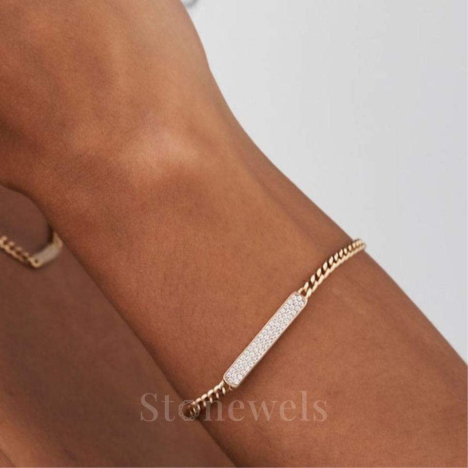 Model Number:Silver Diamond Bar Cuban Chain Bracelet