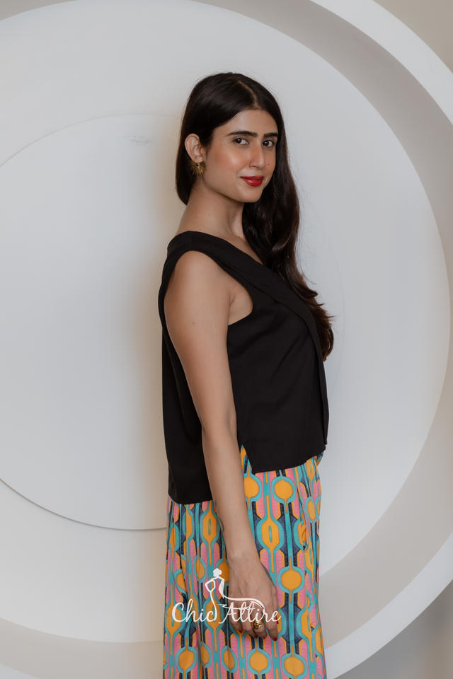 Elegant V-Neck Sleeveless Black Top for Women Comfortable Chic Casual Wear Stylish Cotton Fabric Versatile Western Style