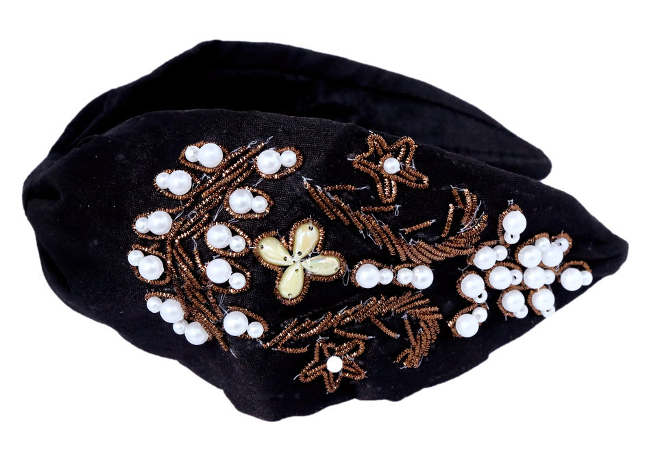 Elegant Versatile Black Velvet Pearl Beaded Headband Luxury Padded Hairband Boutique Accessories Handmade Craftsmanship