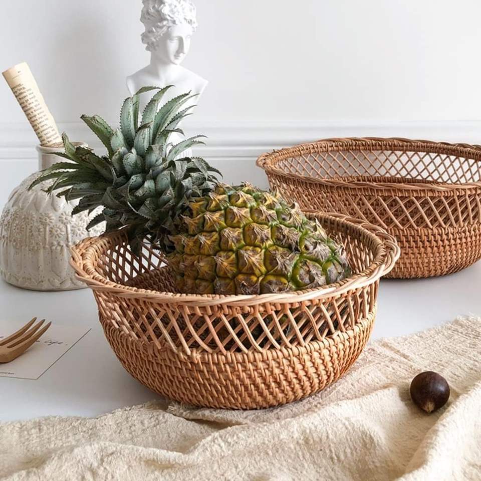 Elegant Vintage Country Style Brown Rattan Woven Eco-Friendly Flexible Design Fruit Bread Storage Basket Set for Kitchenware