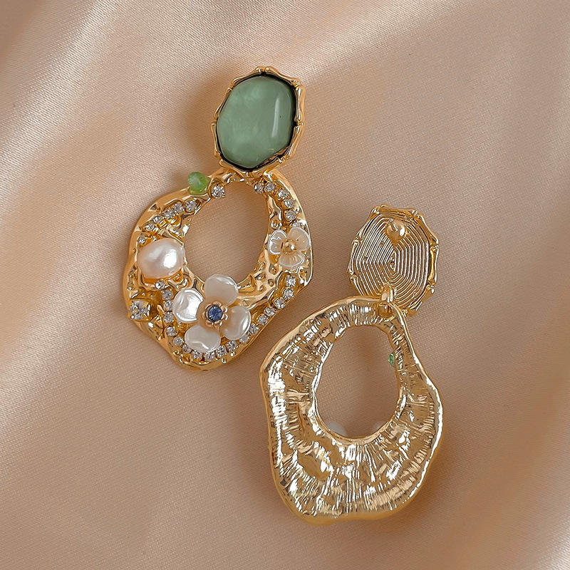 Elegant Vintage Pearl Rhinestone Floral Geometric Clip-On Earrings French Chic Silver Jewelry for Women