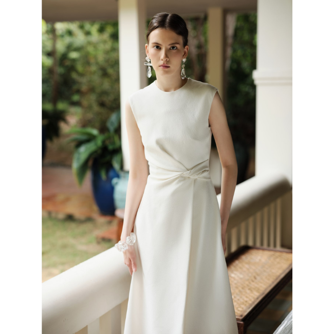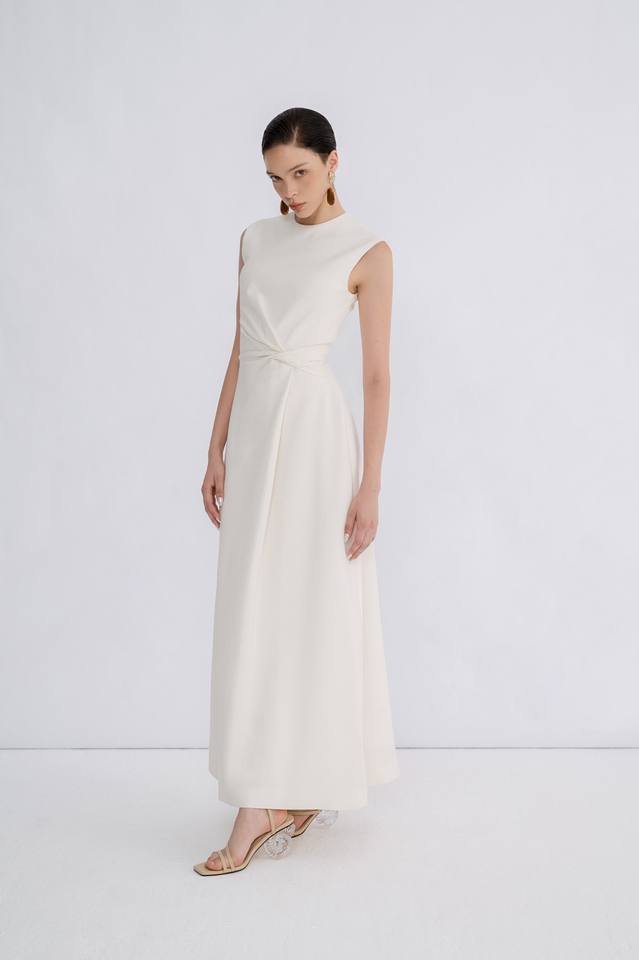 Elegant Vintage Sleeveless Women's Dresses Twisted Waistband A-line Midi Dress YURI TWIST MIDI DRESS 61%Rayon 39%Cotton Vietnam