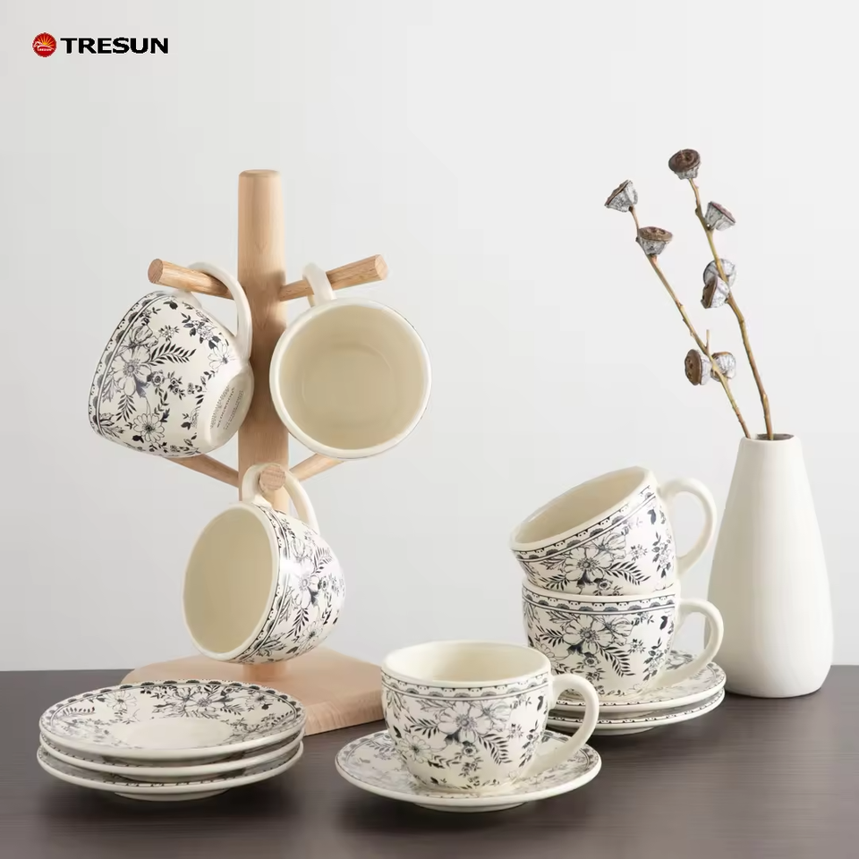 Elegant Vintage Style Ceramic Tea and Coffee Cup and Saucer Set for Home and Cafe Serving Ware