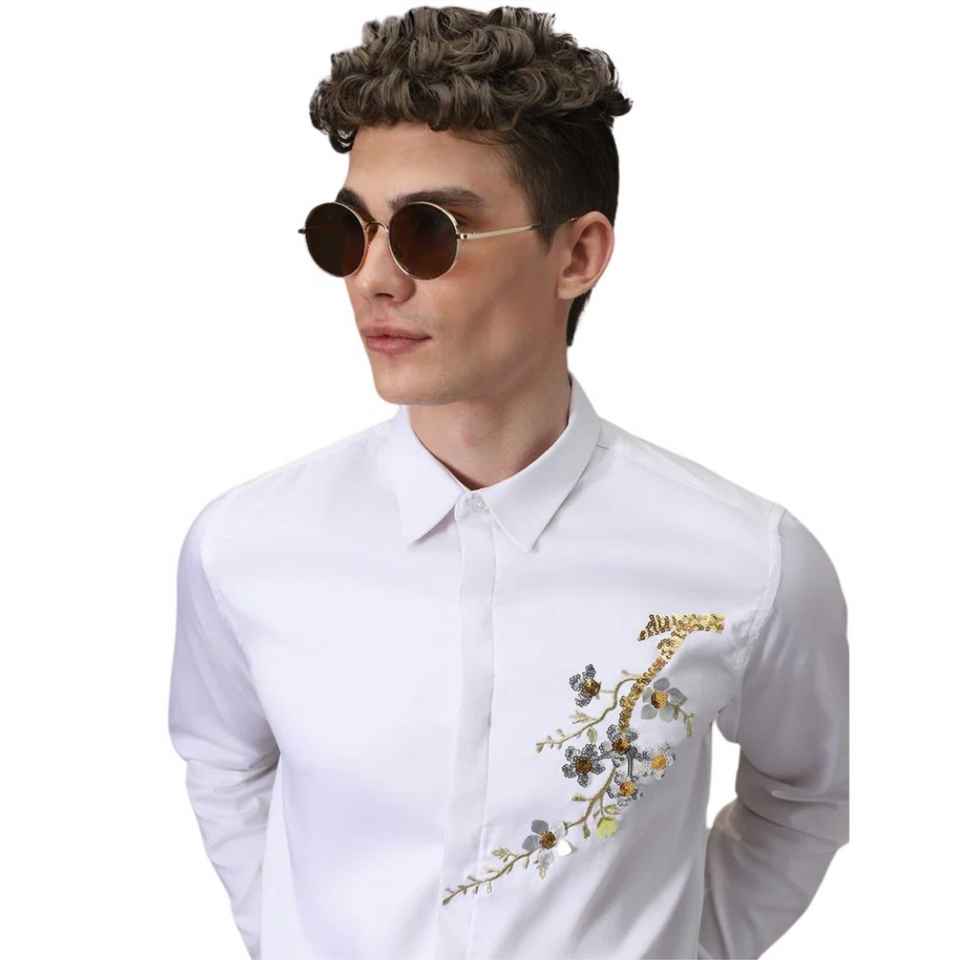 Elegant White Blossom Sequence Shirt Premium Designer Wear for Formal & Casual Occasions