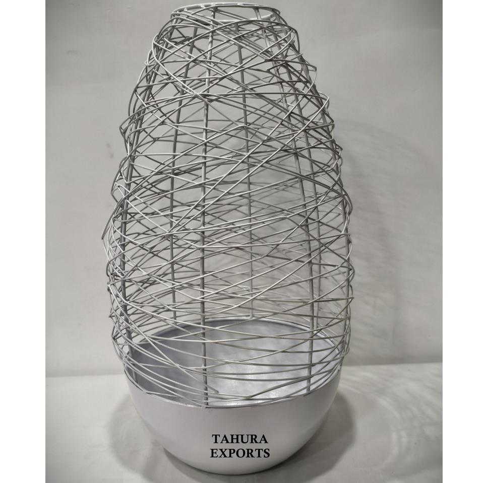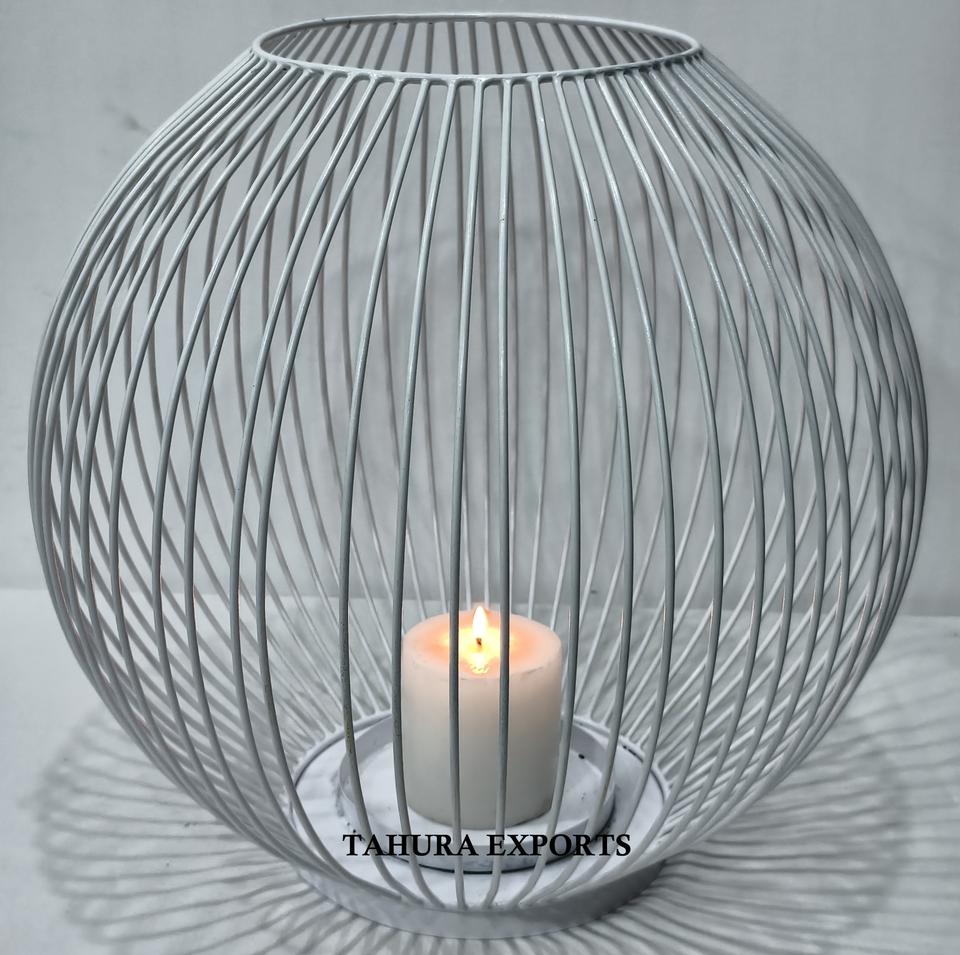 Elegant White Cage Candle Holder With Large Frame And Stylish Appeal Perfect For Adding Class To Weddings Or Special Occasions
