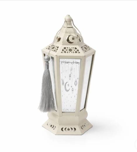 Elegant White Finish Metal Moroccan Lantern with Intricate Cutwork Glass Panels Soft Candle Glow for Festive Home Decor