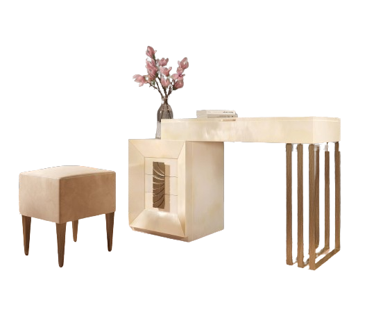 Elegant White Gold Lacquered Makeup Vanity Set MDF Light Makeup Desk With Drawers Stool Mirror Included for Bedroom Dressing