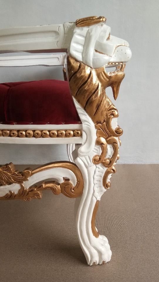 Product name:Lion Head Carved King Throne Chair White Gold Leaves Finishing