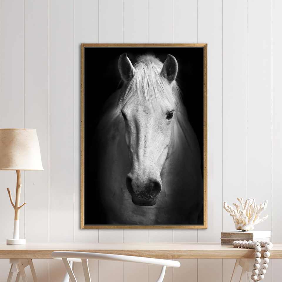 Elegant White Horse Canvas Print - Modern Wall Art Decor,Gold Framed
