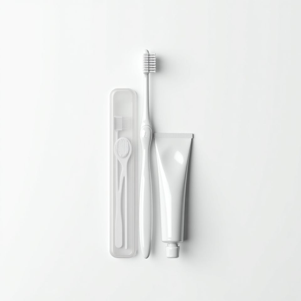 Elegant White Hotel Toothbrush Kit | Minimalist Oral Care Set with Toothpaste and Travel Case