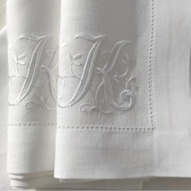Elegant White Linen Napkin with Hemstitch Embroidery Stylish Restaurant Use Cloth Napkin & Accessory for Dinner Table Settings