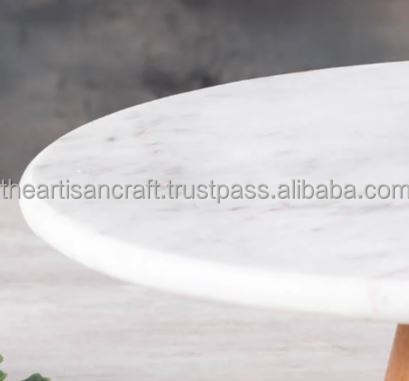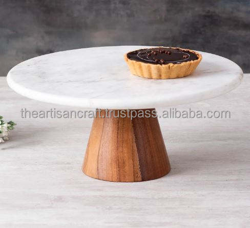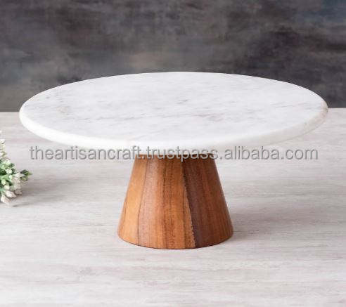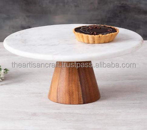 Elegant White Marble Cake Stand Artisan Craft Cake Tools with Durable Wooden Base