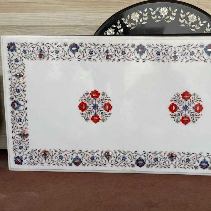 Elegant White Marble Inlay Dining Table Craftsman Design Home Decor Park Courtyard Villa Farmhouse Apartment Hotel School