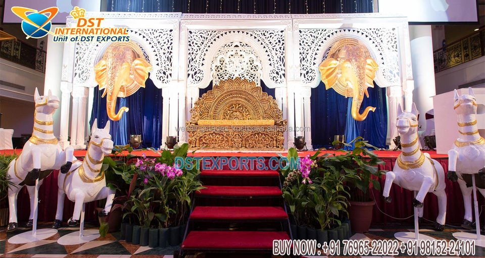 Elegant White Marriage Stage Decoration English Dazzling Wedding Stage Frames Decor Gorgeous White Finish Backdrop Panels Decor
