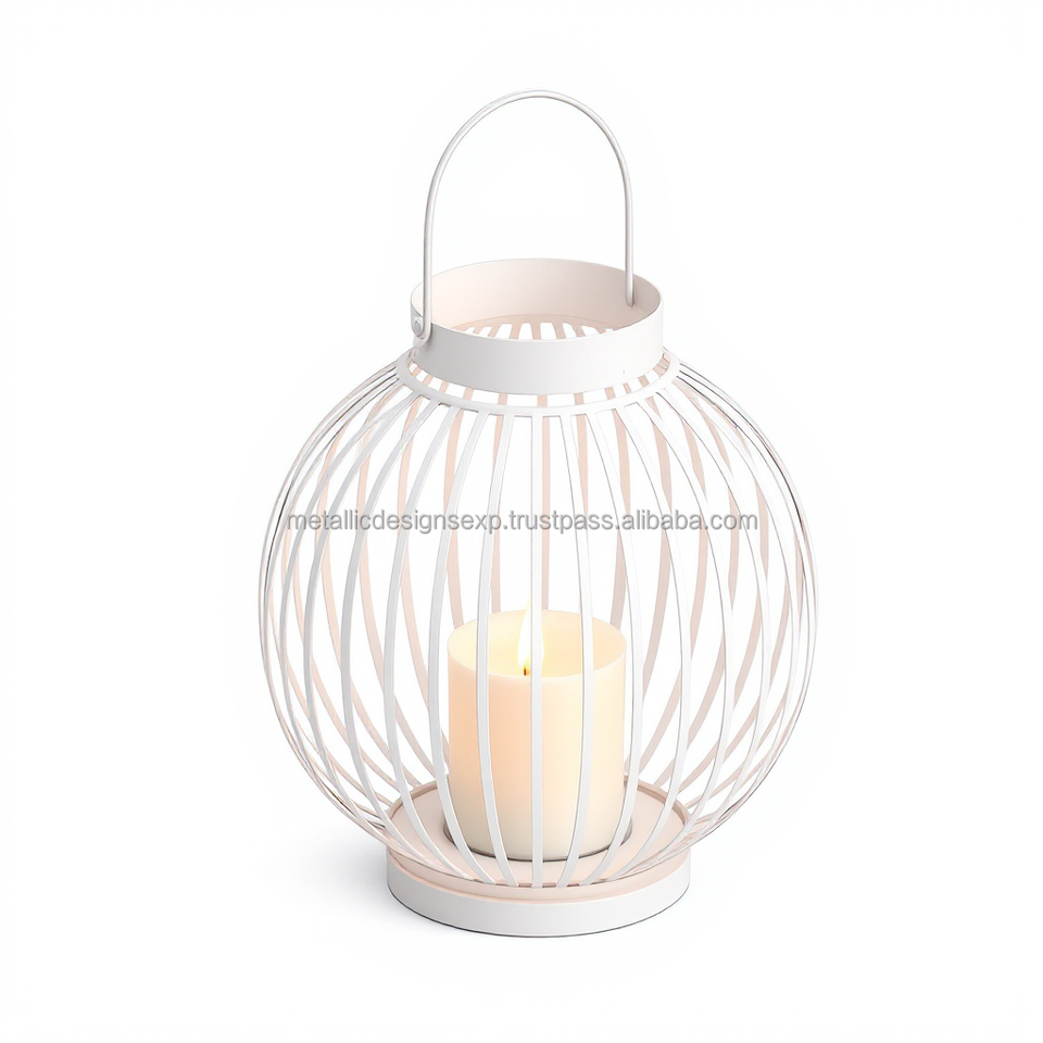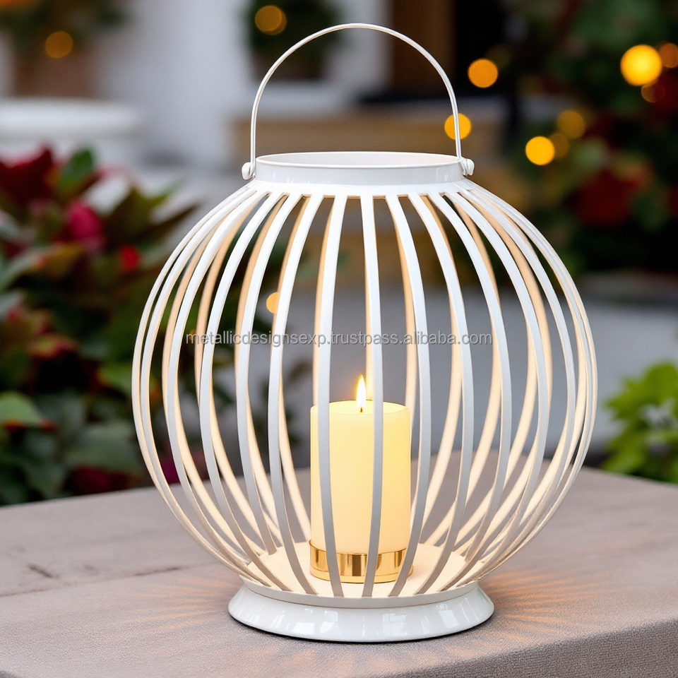 Elegant White Metal Candle Jar Lantern Unique Indoor/Outdoor Christmas Decorative Candle Holder for Gardens Patios Events