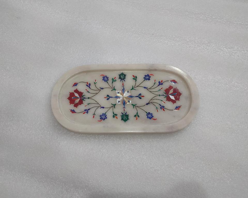 Elegant White Resin Tray with Floral Design Handmade Decorative Tray for Home Kitchen Tabletop and Gifting Purpose