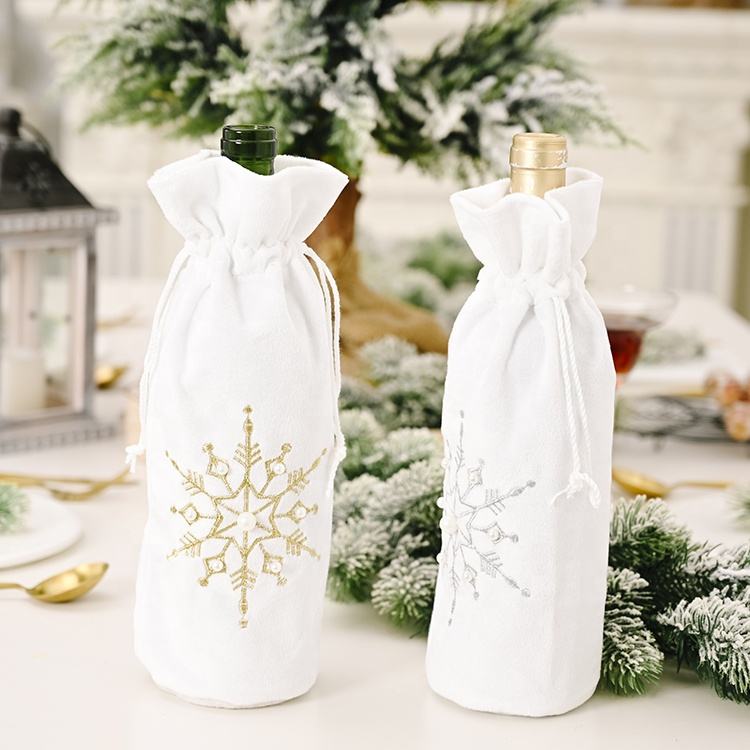 silver embroidery snowflake with pearls velvet wine bagProduct name