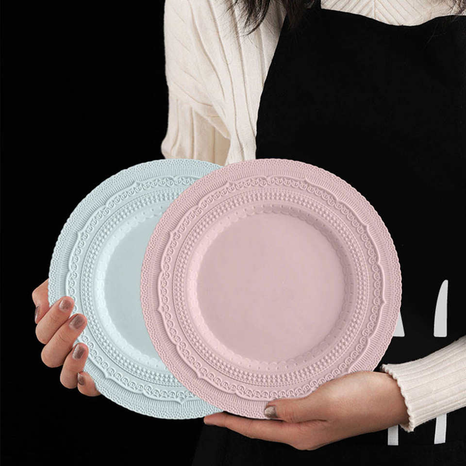 Elegant White Vintage Round Lace Charger Plates Glass Tableware for Princess for Wedding and Party in Stock