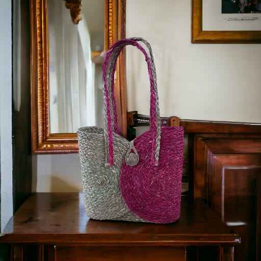 Elegant Wicker Handmade Ladies Handbag Natural Sabai Grass Beige & Pink Handbag Your Perfect Companion for Effortless Elegance