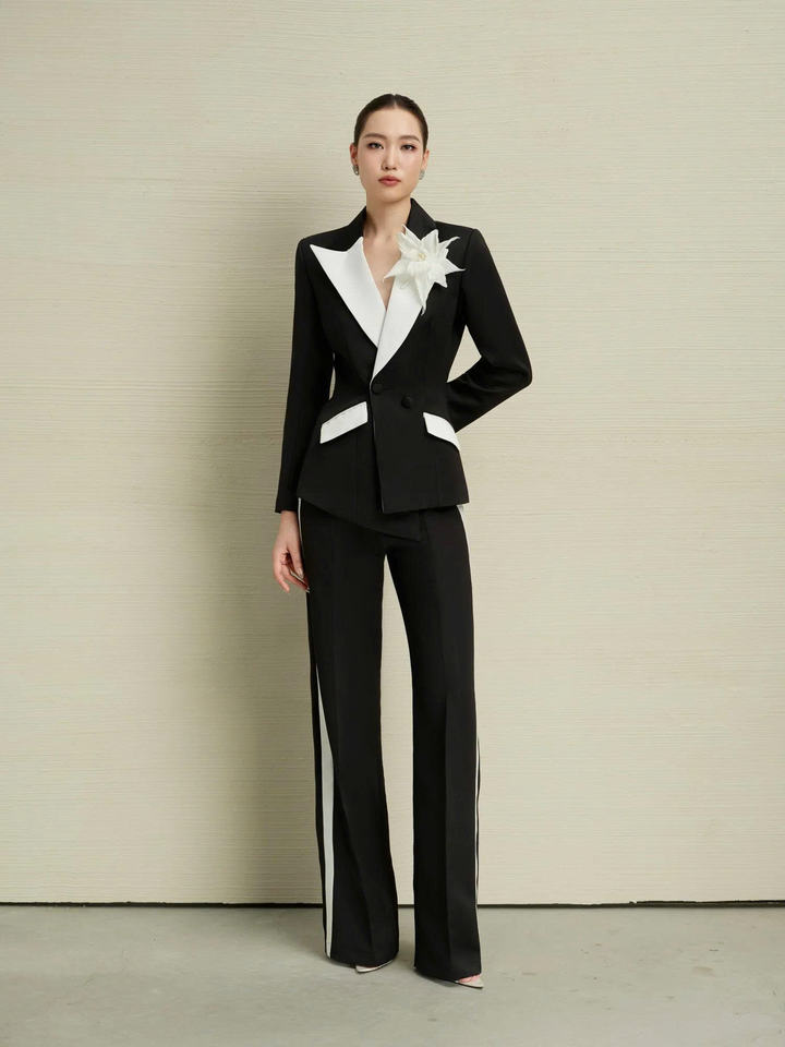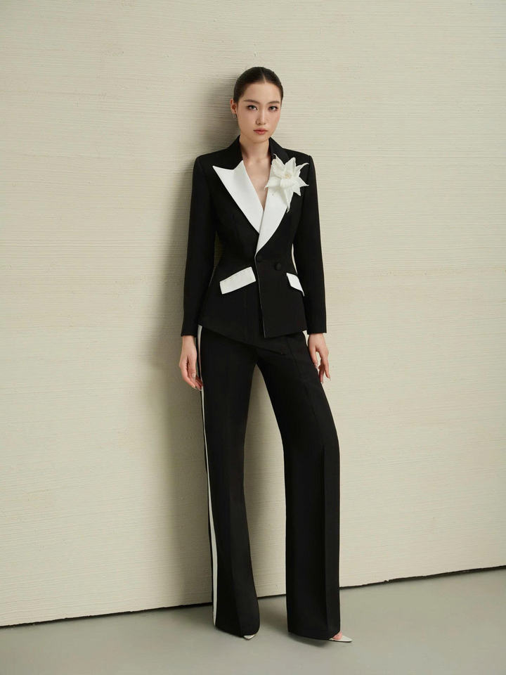 Elegant Women Black and White Tuxedo Suit Set Tailored Blazer and Pants Formal Office Event Wear OEM/ODM Vietnam Manufacturer