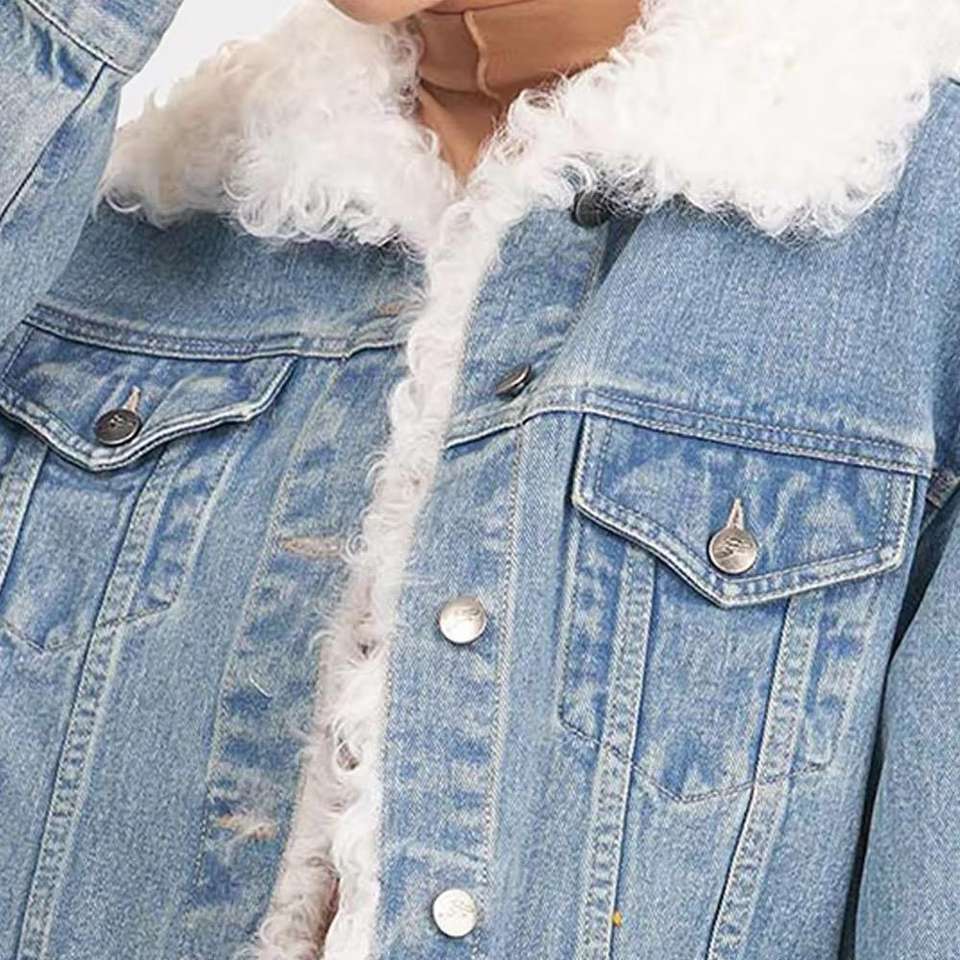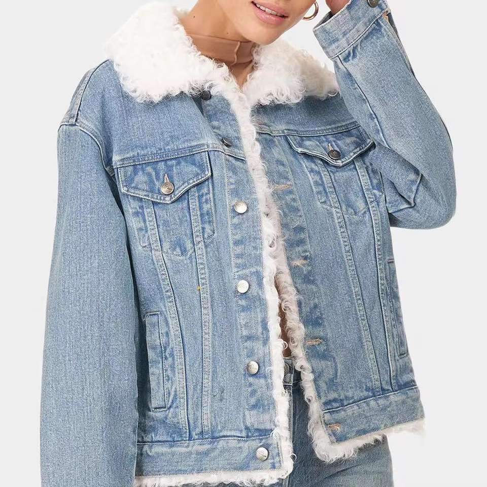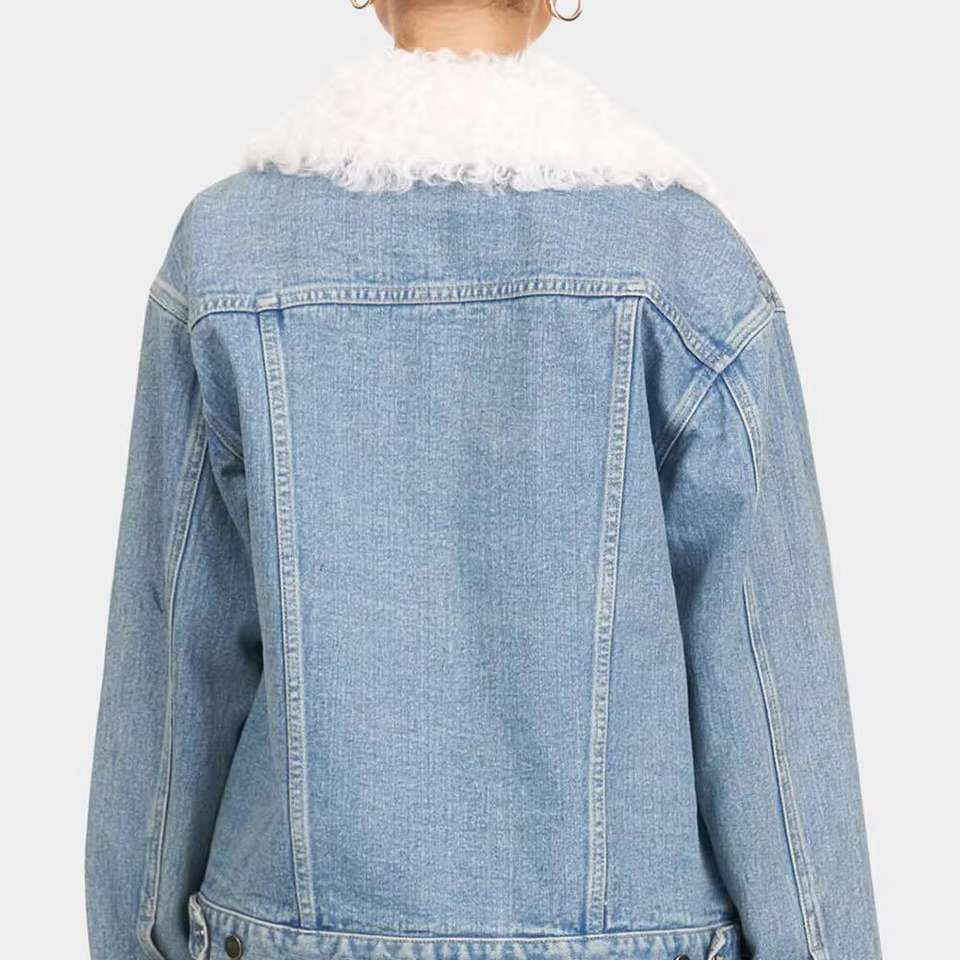 Elegant Women Winter Imitation Fox Fur Collar Denim Jacket Women Loose Short Outerwear With Belt and Zipper