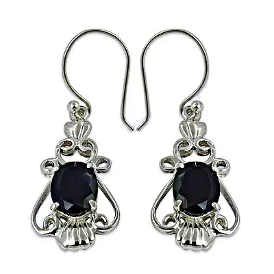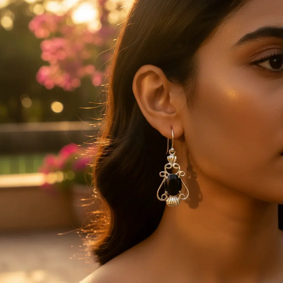 Elegant Women's 925 Silver Black Onyx Dangle Earrings with Gold Plating Pendant and Drop Style for Parties