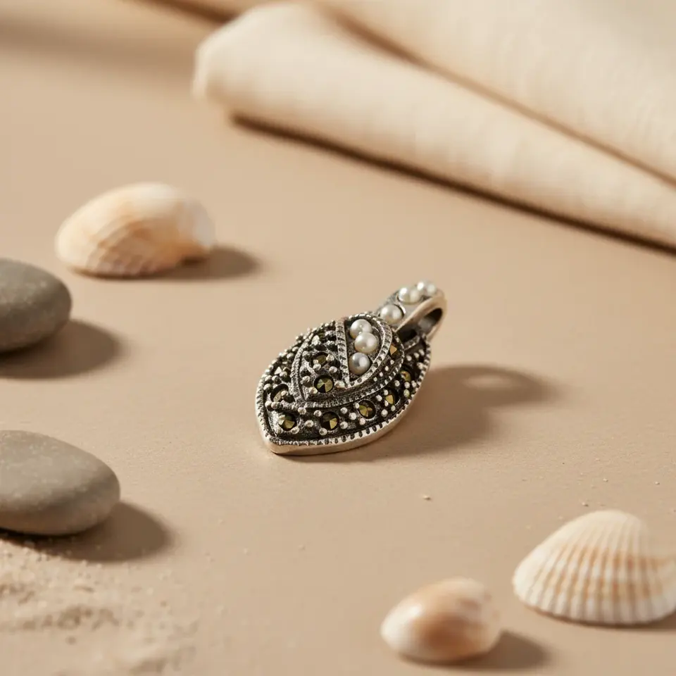 925 Sterling Silver,Pearl,MarcasiteMaterial