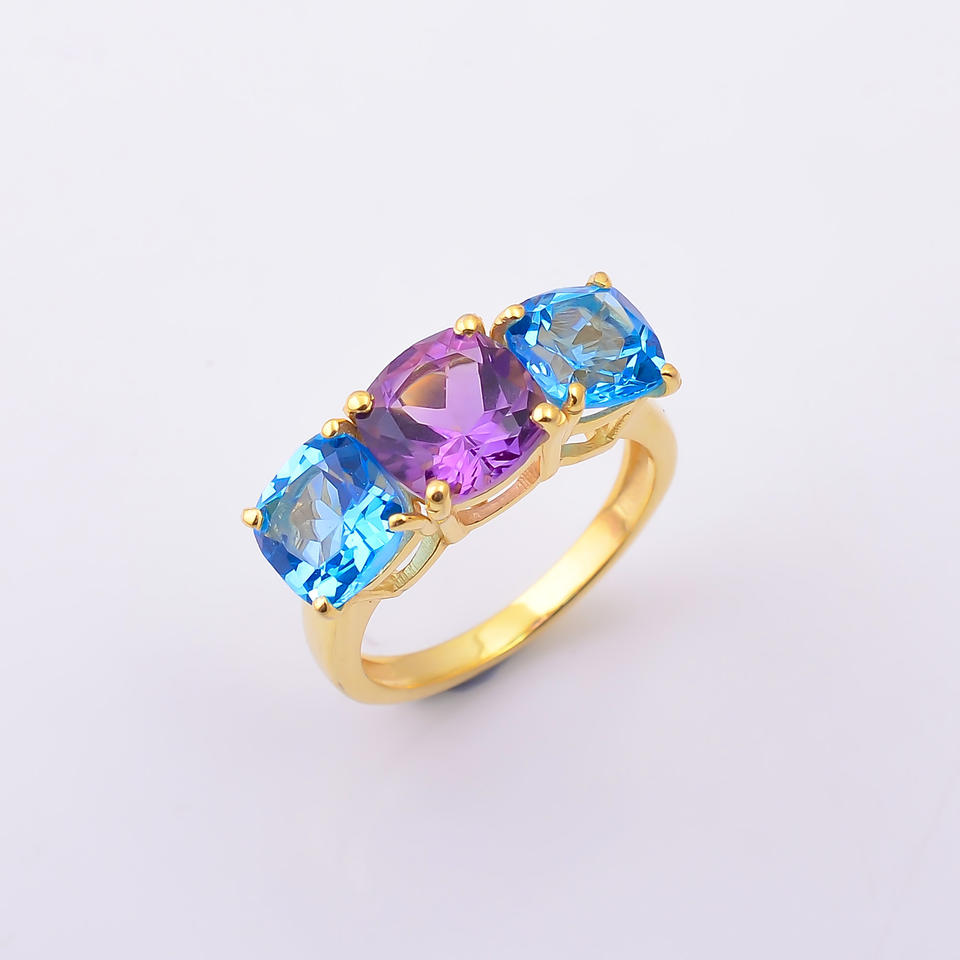 Elegant Women's 925 Sterling Silver Wedding Ring with Natural Amethyst/Blue Topaz Gemstone 18K Gold Vermeil for Parties