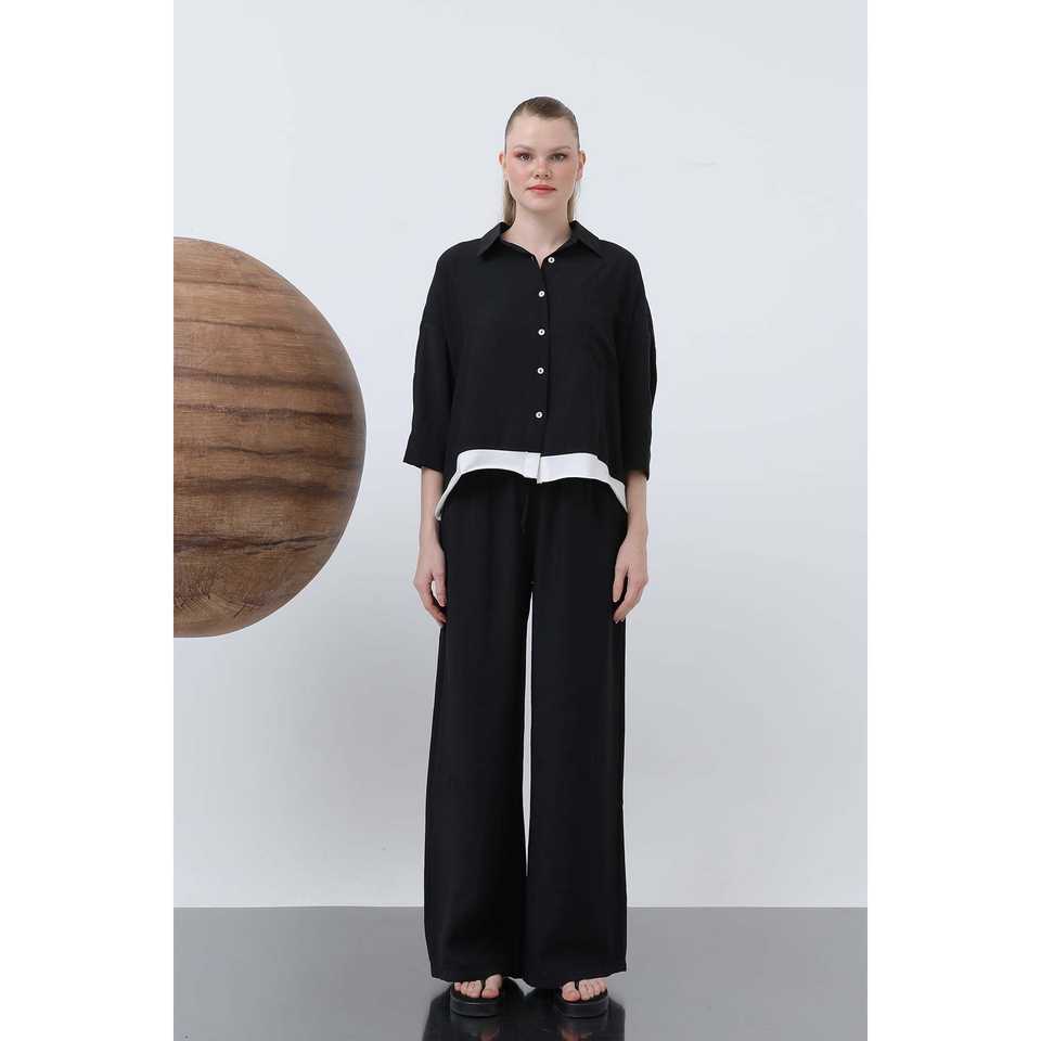 Elegant Women's High Waist Wide Leg Trousers Black Breathable Elastic Waist Pants Comfortable Everyday Wear Style