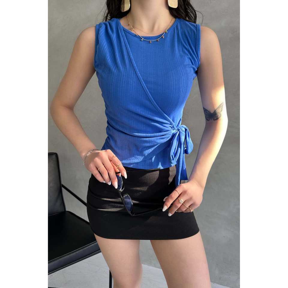 Elegant Women's Knitted Sleeveless Tank Top With Wrap Front Tie Detail Black