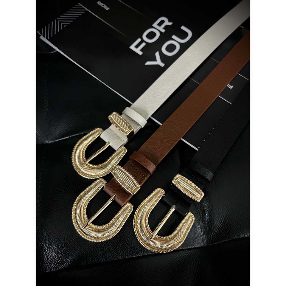 Elegant Women's PU Belt With Gold Plate Buckle Bohemian Style Fashion Accessory For Casual Wear