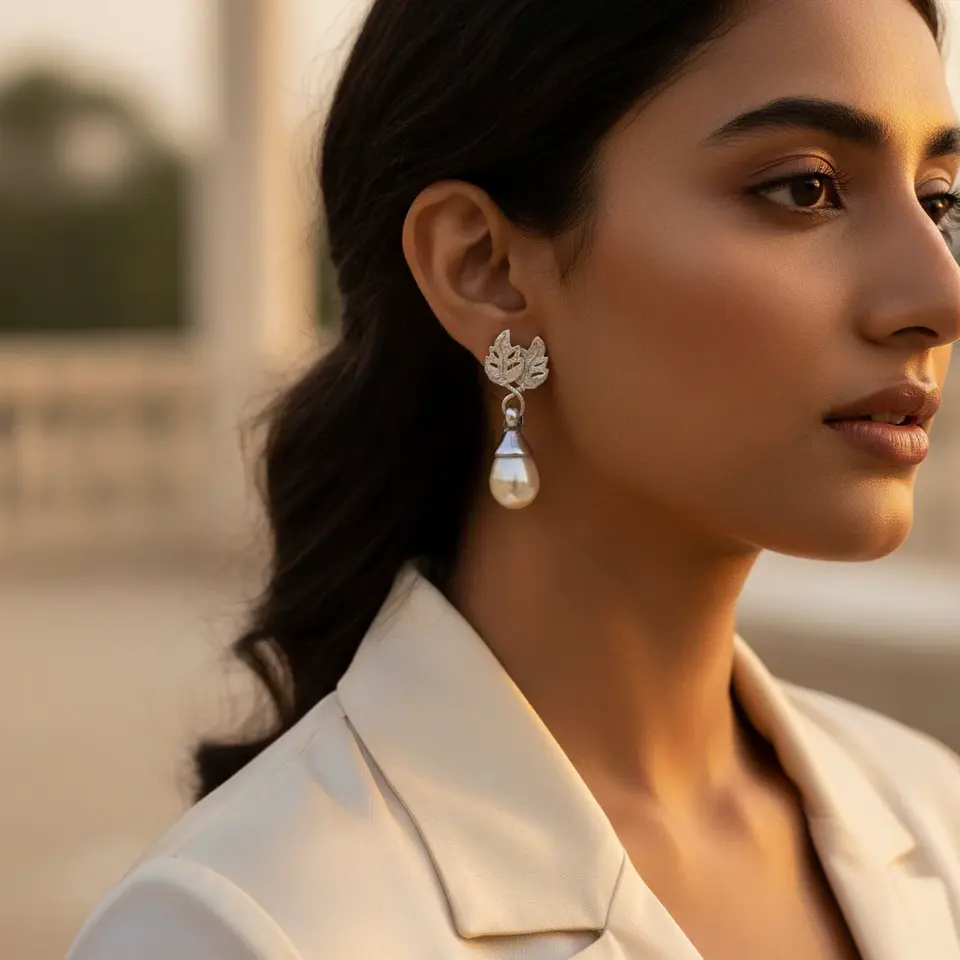 Elegant Women's Silver Leaf Pearl Drop Earrings Fashion Jewelry
